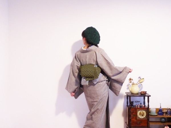 出張会議上がりの彼女が、予約してくれているお店へはデニム着物で。
