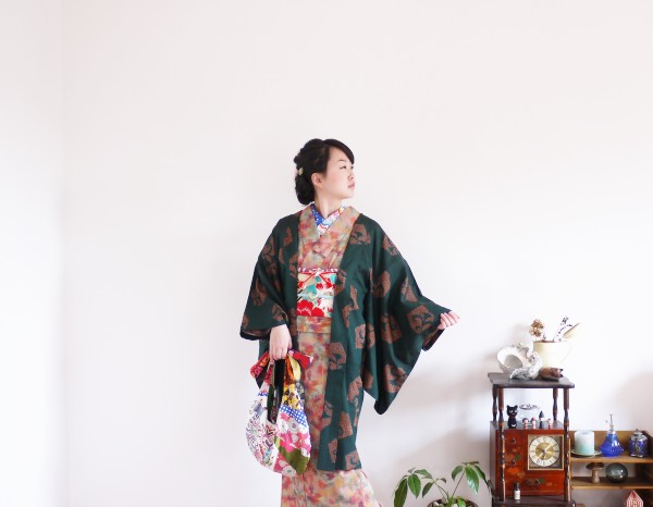 「義援金お着物バザール」でゲットの長羽織を早速。