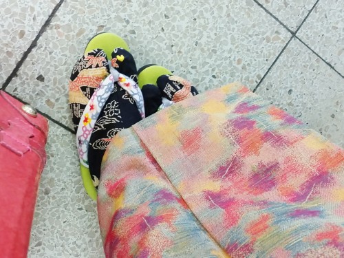 足元は、六花さんでオーダーさせて頂いたカレンブロッソ草履。