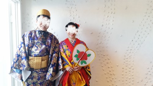 弟夫婦は、結婚パーティーでは、なんと琉装姿で登場してくれました。