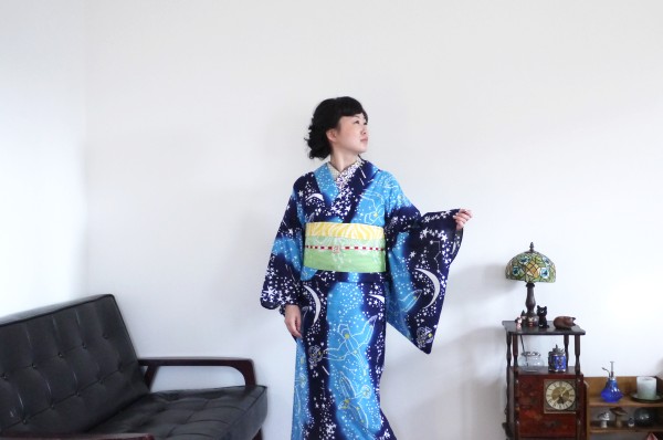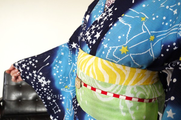 梅屋さんの黄色の帯揚げ。tentoさんの帯締め。