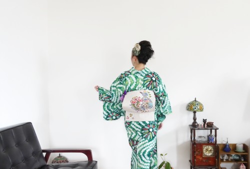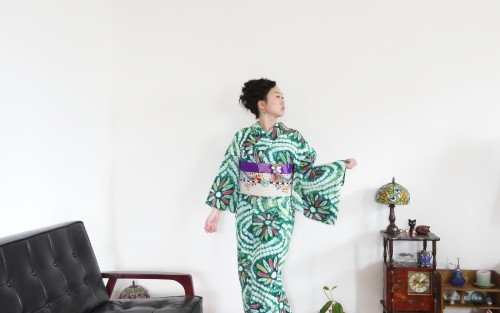 浴衣パーティでのアンティーク絞り浴衣コーディネート❤︎