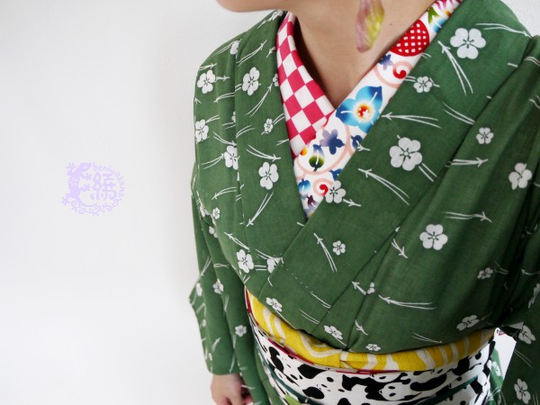 半衿は、ブーゲンビリア×ピンクの市松にしました ^^