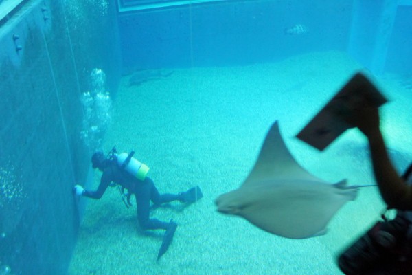 こちらも横長の水槽がぐるーっとあるので、こんなに近くに!