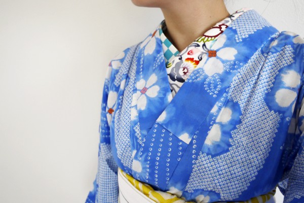 ちくちくお手入れした絞り風浴衣で。