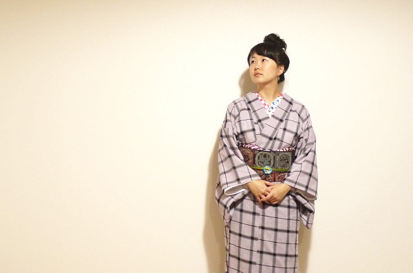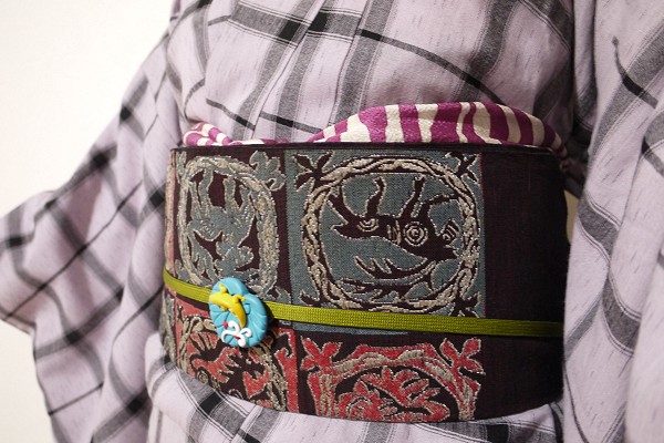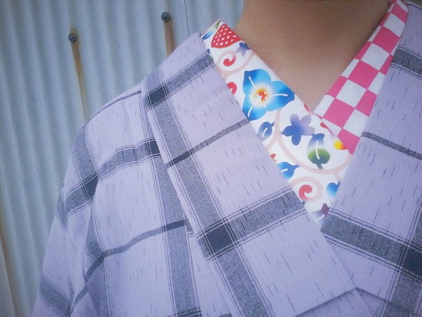 衿は「ブーゲンビリア唐草」にピンクの市松をあわせてみました♪