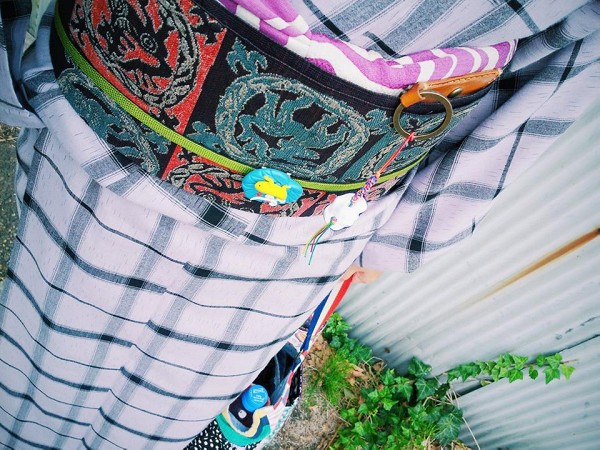 帯揚げも梅まりさん。帯留めはC:Robotのコヤナギアイコさんさんのヤモリ。