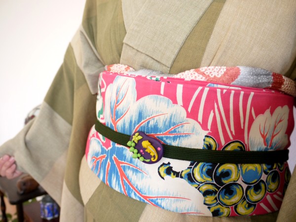 帯は、ふだんきもの「杏」さんからの、アンティークの葡萄♪