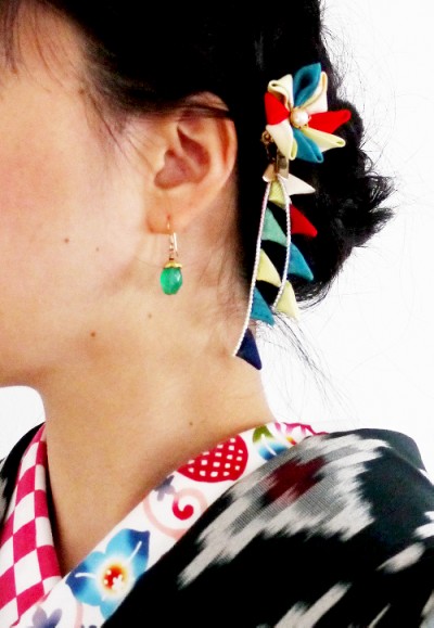 髪飾りは、葉ちっく先生のワークショップで作ったこ。