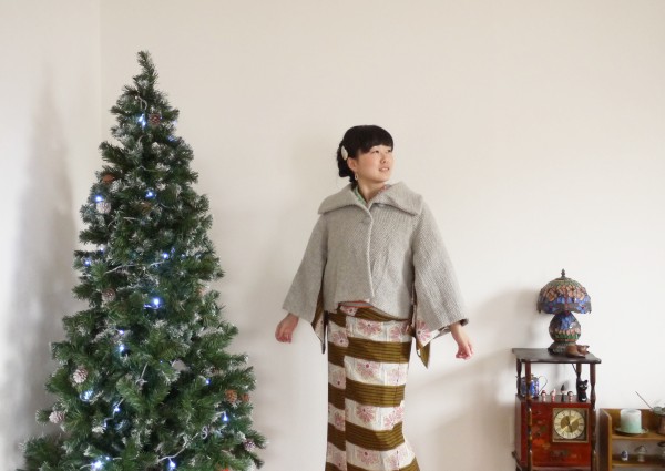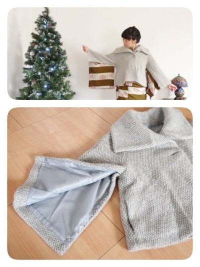 「洋服用だったポンチョの袖をさいて着物でも使えるように」された