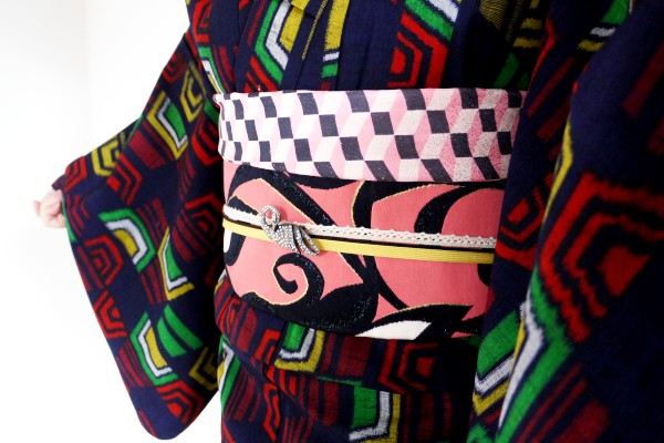 帯揚げは、「神戸着物デコーレーション」でヒメノルミさんのブースで一目ぼれしたピンクのを。