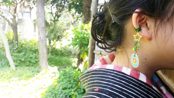 紅若菜の和紙に染めたピアスをアレンジして