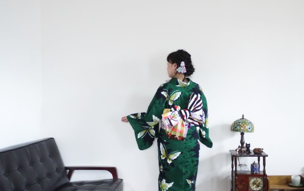浴衣は、札幌のリサイクルショップでゲットした蝶緑。