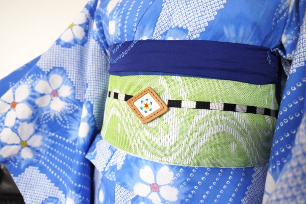 子ども用兵児帯を一文字に。