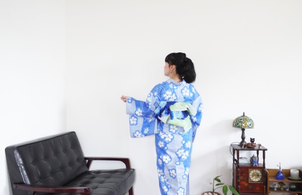 7/28 「浴衣とヘアアレンジレッスン」の日は水色の浴衣で。