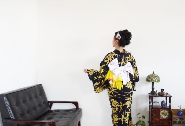 あえて、子ども用兵児帯も黄色にして黄色と黒を強調。