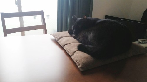 ↑ 娘ちゃんがしゃもじのためにセッティングしてくれた座布団で