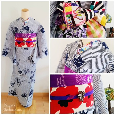 藍ちゃんコーデ02 「バラの浴衣で夏を惜しむコーデ」
