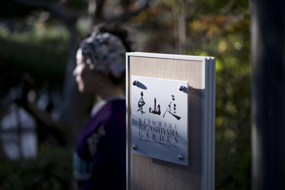 「東山庭」の看板の向こうに私がおります ^^ うほうほ。