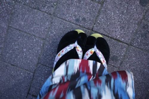 少し大きめサイズの足袋なので、中に足袋ソックスも履いています。