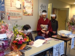 Hさんが撮ってくださった、受付で、そわそわしすぎてにやつく私w
