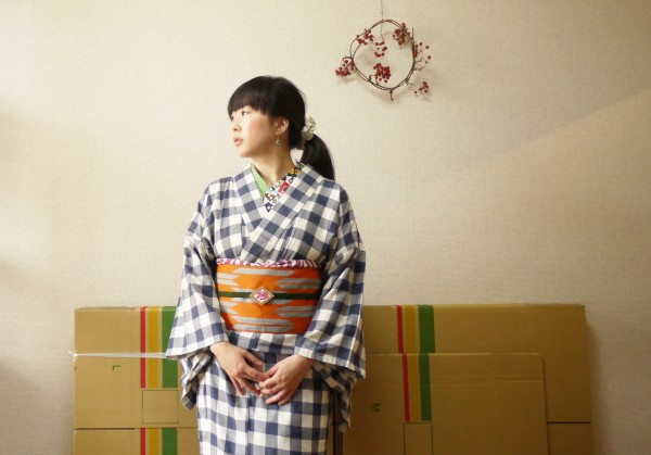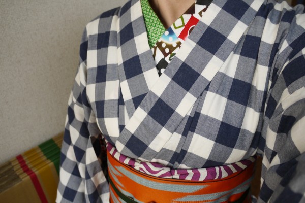 嬉しい頂き物の、木綿の着物に、半幅帯で。
